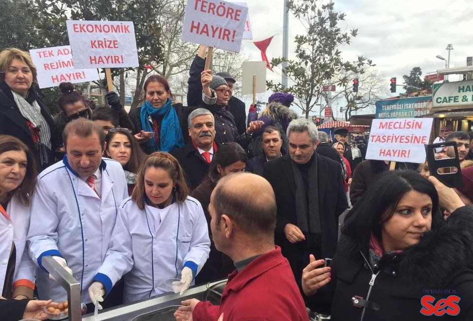 Anayasa değişikliği referandumu öncesinde CHP ilçe başkanlığı Beşiktaş Meydanı'nda "hayır için hayır lokması" dağıttı.