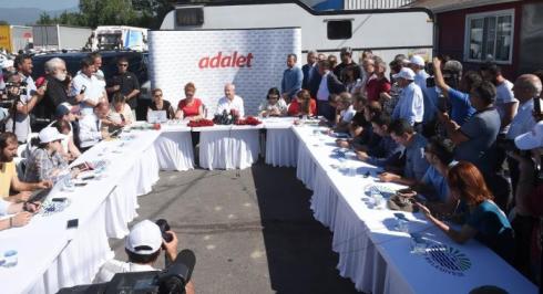 CHP GENEL BAŞKANI KEMAL KILIÇDAROĞLU, ADALET YÜRÜYÜŞÜNÜN 11. GÜNÜNDE YÜRÜYÜŞE BAŞLAMADAN ÖNCE BASIN AÇIKLAMASI YAPTI VE BASIN MENSUPLARIYLA BAYRAMLAŞTI (25 HAZİRAN 2017)