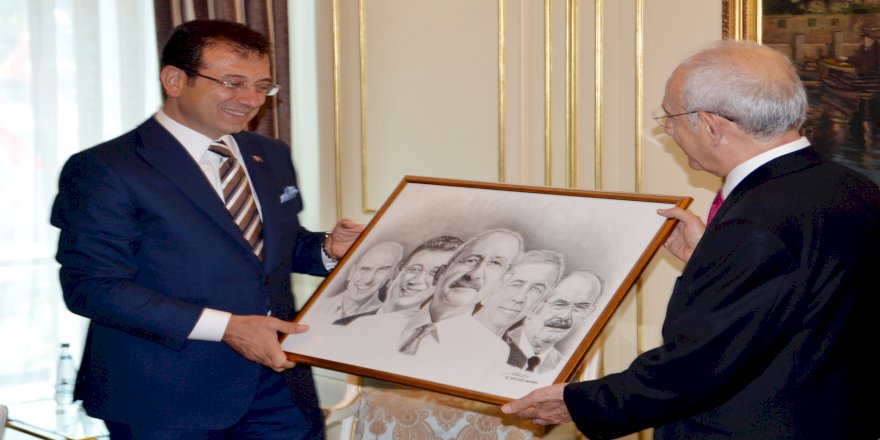 Ziyaretten duyduğu memnuniyeti dile getiren Ekrem İmamoğlu, Kılıçdaroğlu’na genç bir ressamın yaptığı, Kılıçdarolu ile İstanbul, Ankara İzmir ve Eskişehir belediye başkanlarının portresinin olduğu karakalem resim çalışmasını hediye etti. İlkokul mezunu olduğunu belirten ressamın muazzam bir yeteneğe sahip olduğunu ifade eden İmamoğlu, genç kardeşimiz bize “Kağıdım bu kadardı, yoksa herkesi çizecektim. Çizemediklerim affetsin” dedi.
