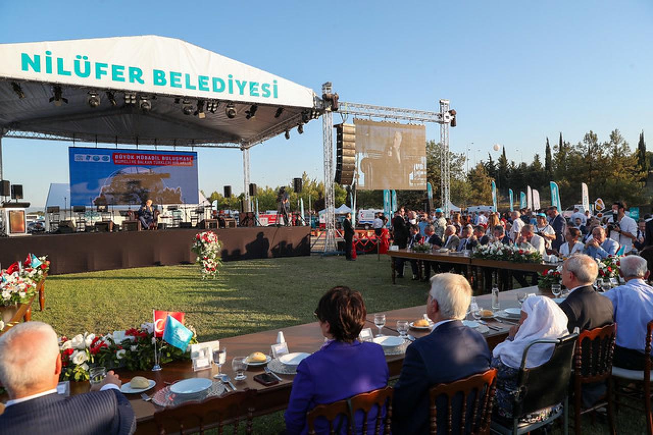 Cumhuriyet Halk Partisi Genel Başkanı Kemal Kılıçdaroğlu, Nilüfer Belediyesi’nin Bursa Görükle İpek Spor Sahası’nda düzenlendiği Büyük Mübadil Buluşması’nda konuştu. CHP lideri Kılıçdaroğlu, daha sonra Prof. Dr. İlber Ortaylı’nın Lozan Anlaşması başlıklı konferansını dinledi.