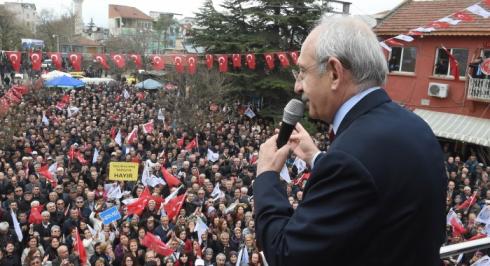 Anayasa değişikliğiyle ekonomide istikrar yakalanacağına yönelik açıklamalara da değinen Kılıçdaroğlu, "15 yıldır iktidardasınız. İstediğiniz kanunu, istediğiniz kararnameyi çıkarıyorsunuz. İstediğiniz kararı alıyorsunuz. Engel olan var mı? Demek ki millete doğruları söylemiyorlar. Sanıyorlar ki millet de bunu yiyecek, yutacak. Hiç öyle bu milletin yemeye yutmaya niyeti de yok. Sandığa gidecek vatanı için, bayrağı için, demokrasi için, birlikte yaşama iradesini ortaya koymak için, her türlü düşünceye saygı göstermek için, ’Herkesin işi olsun, herkesin aşı olsun’ demek için sandığa gidecektir. Hayırlı bir işe imza atacaktır." ifadesini kullandı.