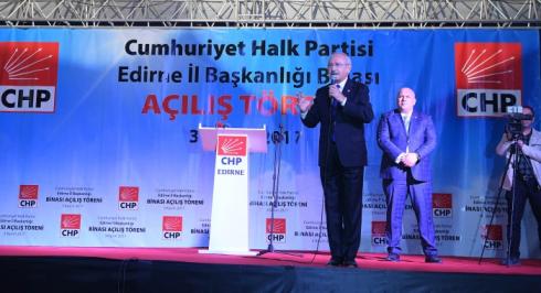 Daha sonra CHP Edirne İl Başkanlığı Binası’nın açılış törenine katılan Kılıçdaroğlu, burada yaptığı konuşmada, Edirne ile bütün Türkiye’nin onur ve gurur duyduğunu, çünkü Edirne’nin referandumda bir tarih yazdığını belirterek, "Edirne demokrasiden, bayraktan, vatandan, çok partili rejimden, demokratik parlamenter sistemden yana tavrını koydu. ’Tek adam rejimini, tek adamı istemiyorum’ dedi. Edirne ile kim gurur duymaz." şeklinde konuştu.