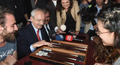 Gençlerle sohbet ettikten sonra tavla oynamaya başlayan Kılıçdaroğlu, tek el oynanan oyunu kazandı.