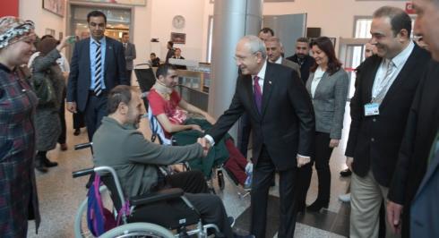 CHP Genel Başkanı Kemal Kılıçdaroğlu, Ankara Bilkent’teki Gaziler Fizik Tedavi ve Rehabilitasyon Eğitim Araştırma Hastanesini ziyaret ederek, tedavi gören gazilerle bir araya geldi.