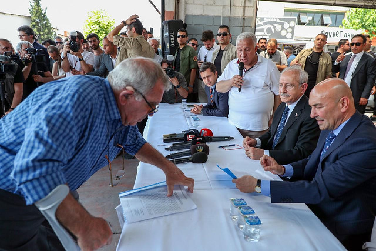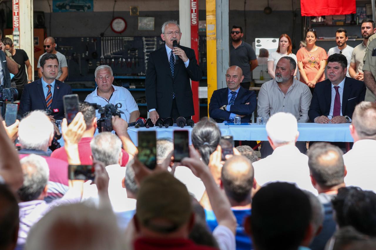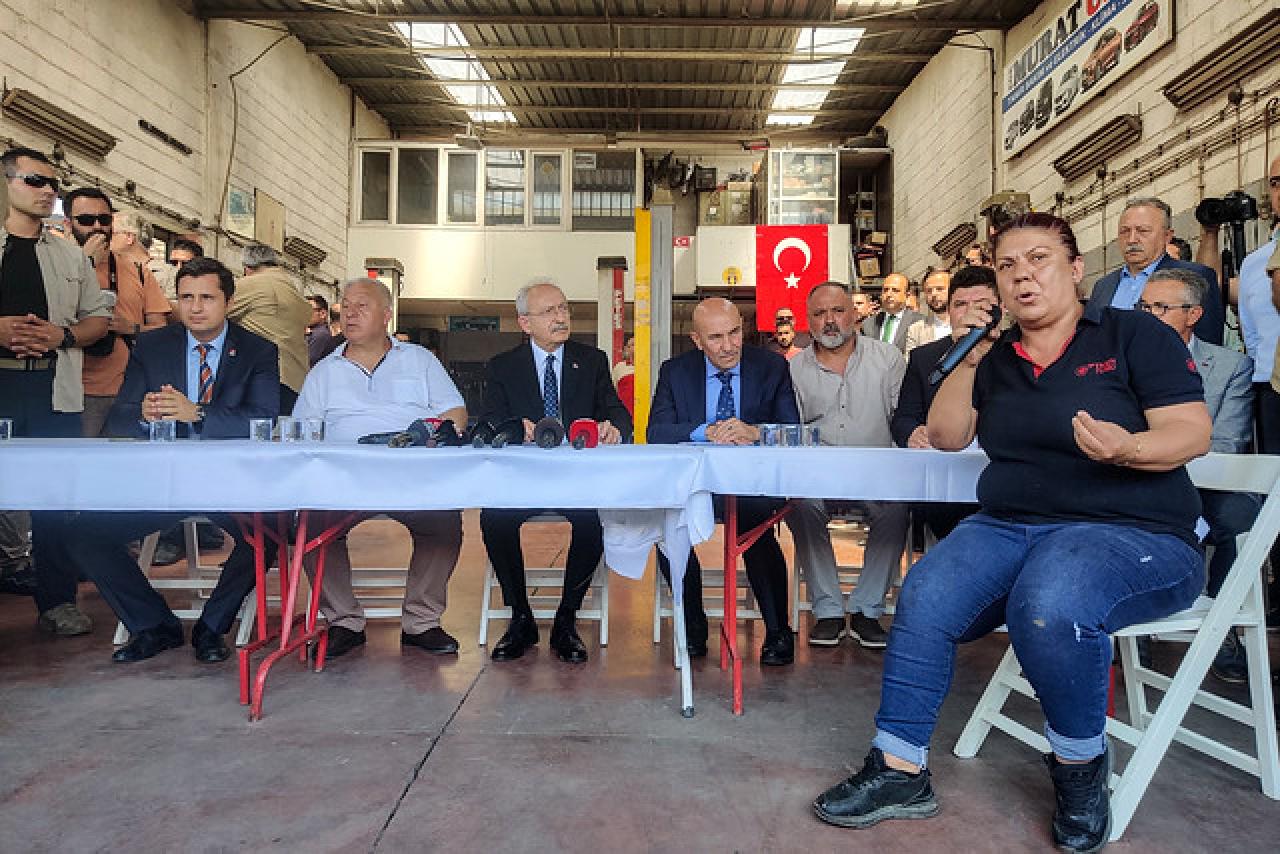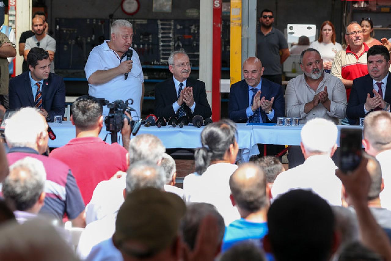 Cumhuriyet Halk Partisi Genel Başkanı Kemal Kılıçdaroğlu, İzmir Buca’da 6. Sanayi Sitesi’ne giderek sanayi esnafı ile bir araya geldi. Esnafın sorunlarını ve taleplerini dinleyen CHP Genel Başkanı Kemal Kılıçdaroğlu, çözüm önerilerini anlattı.