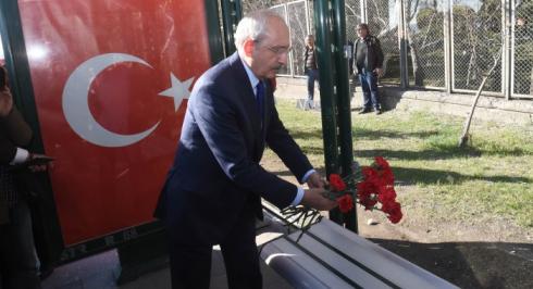 CHP Genel Başkanı Kemal Kılıçdaroğlu Şehitler Durağı’na giderek, Kayseri’de bombalı saldırı nedeniyle bindikleri araçta şehit düşen askerlerin anısına karanfil bıraktı, şehitlerin ruhlarına okunan duaya eşlik etti.