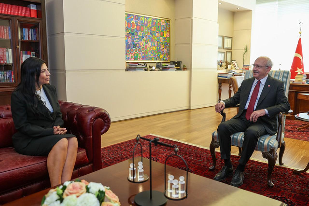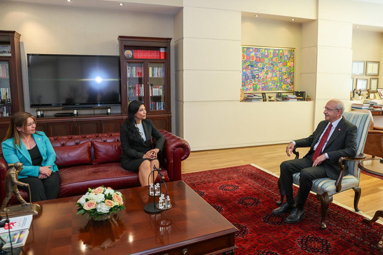 Cumhuriyet Halk Partisi Genel Başkanı Kemal Kılıçdaroğlu, Kuzey Kıbrıs Türk Cumhuriyeti Cumhuriyet Meclisi Başkan Yardımcısı Fazilet Özdenefe ile CHP Genel Merkezi’ndeki makamında bir araya geldi. CHP lideri Kılıçdaroğlu’na Türkiye Büyük Millet Meclisi Başkan Vekili ve Denizli Milletvekili Gülizar Biçer Karaca eşlik etti.