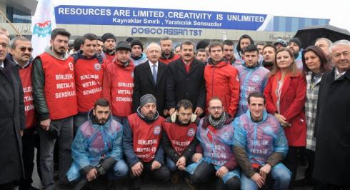 CHP GENEL BAŞKANI KEMAL KILIÇDAROĞLU, KOCAELİ’DE İŞTEN ÇIKARILDIKLARI İÇİN EYLEM YAPAN İŞÇİLERİ ZİYARET ETTİ