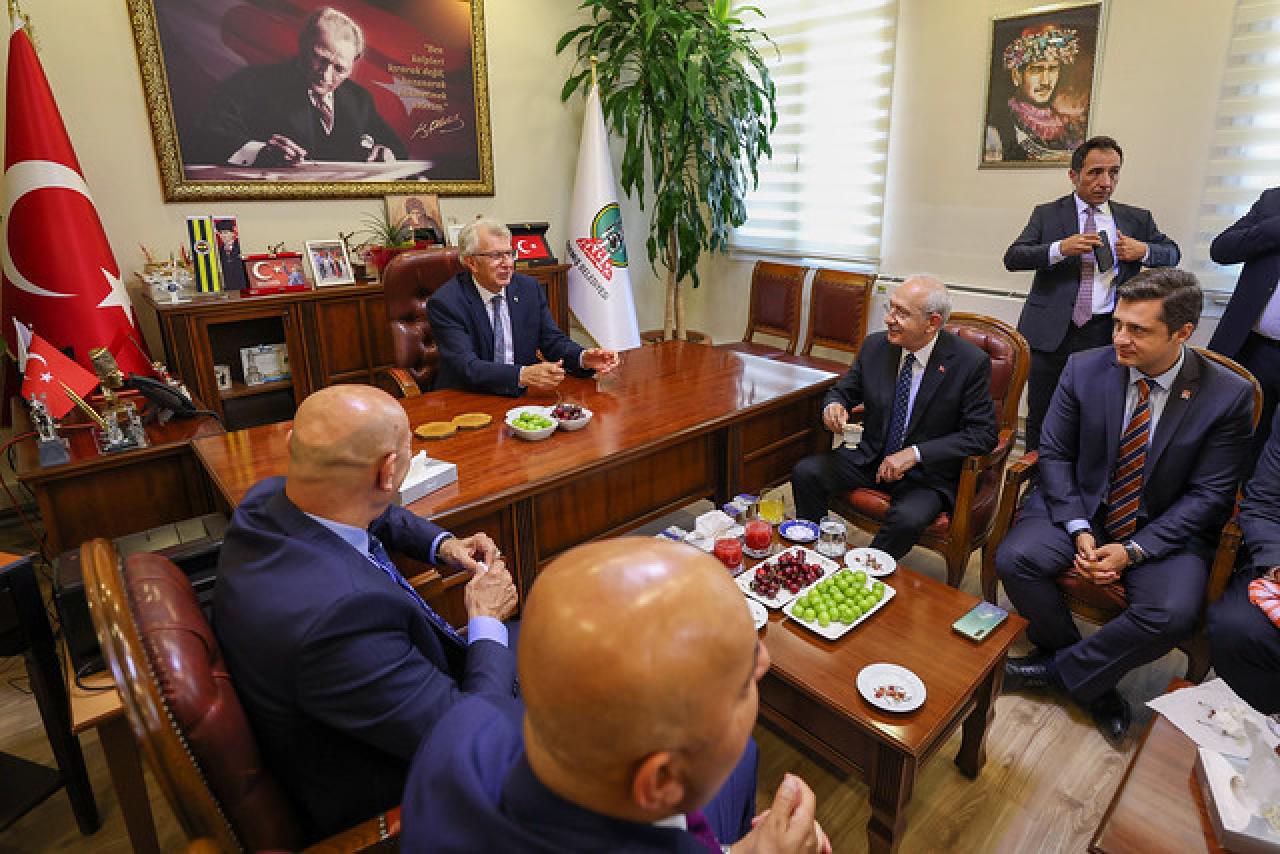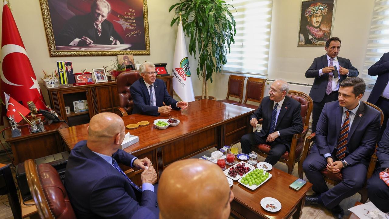 Cumhuriyet Halk Partisi Genel Başkanı Kemal Kılıçdaroğlu, Ödemiş Belediyesini ziyaret ederek Belediye Başkanı Mehmet Eriş ile bir araya geldi.