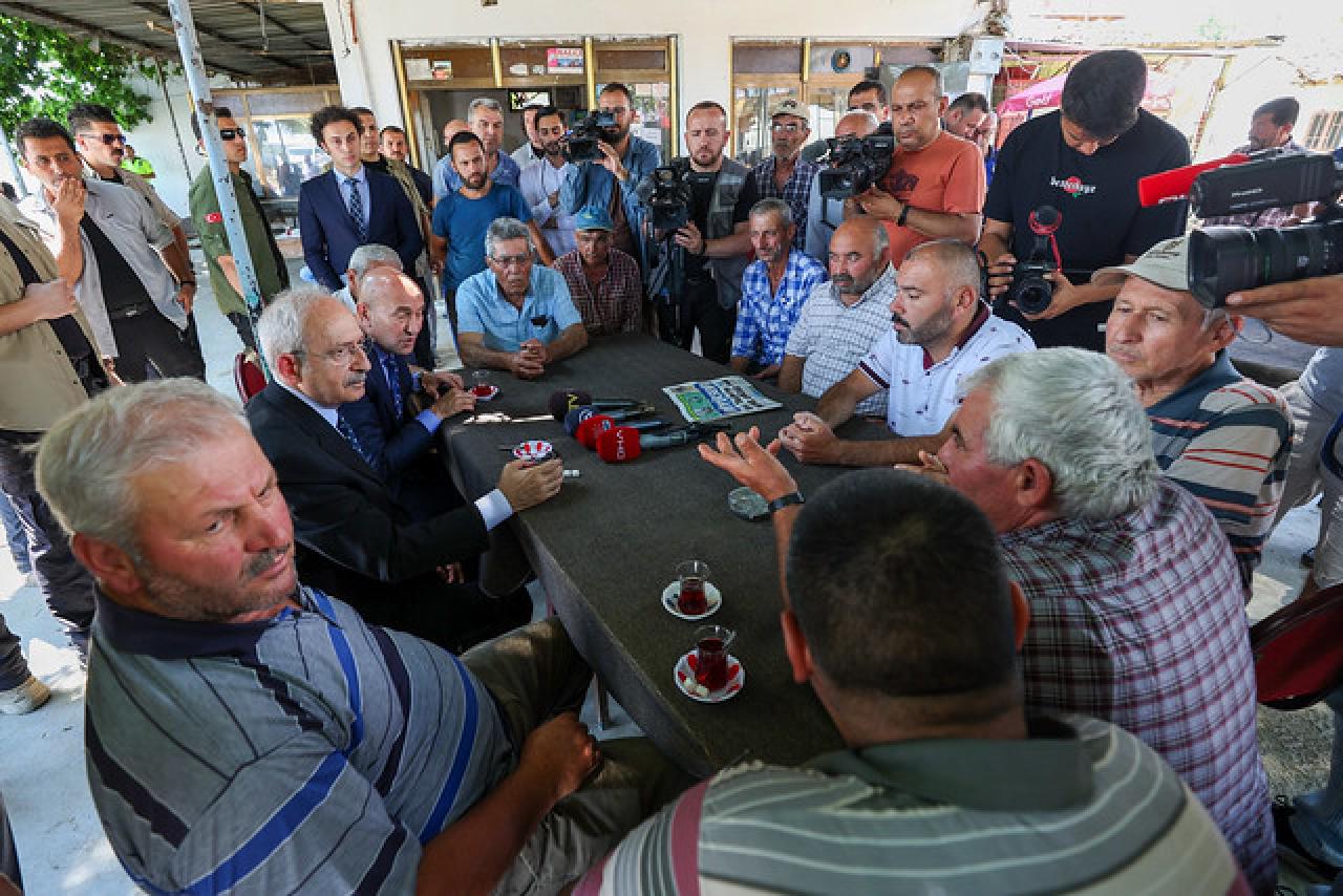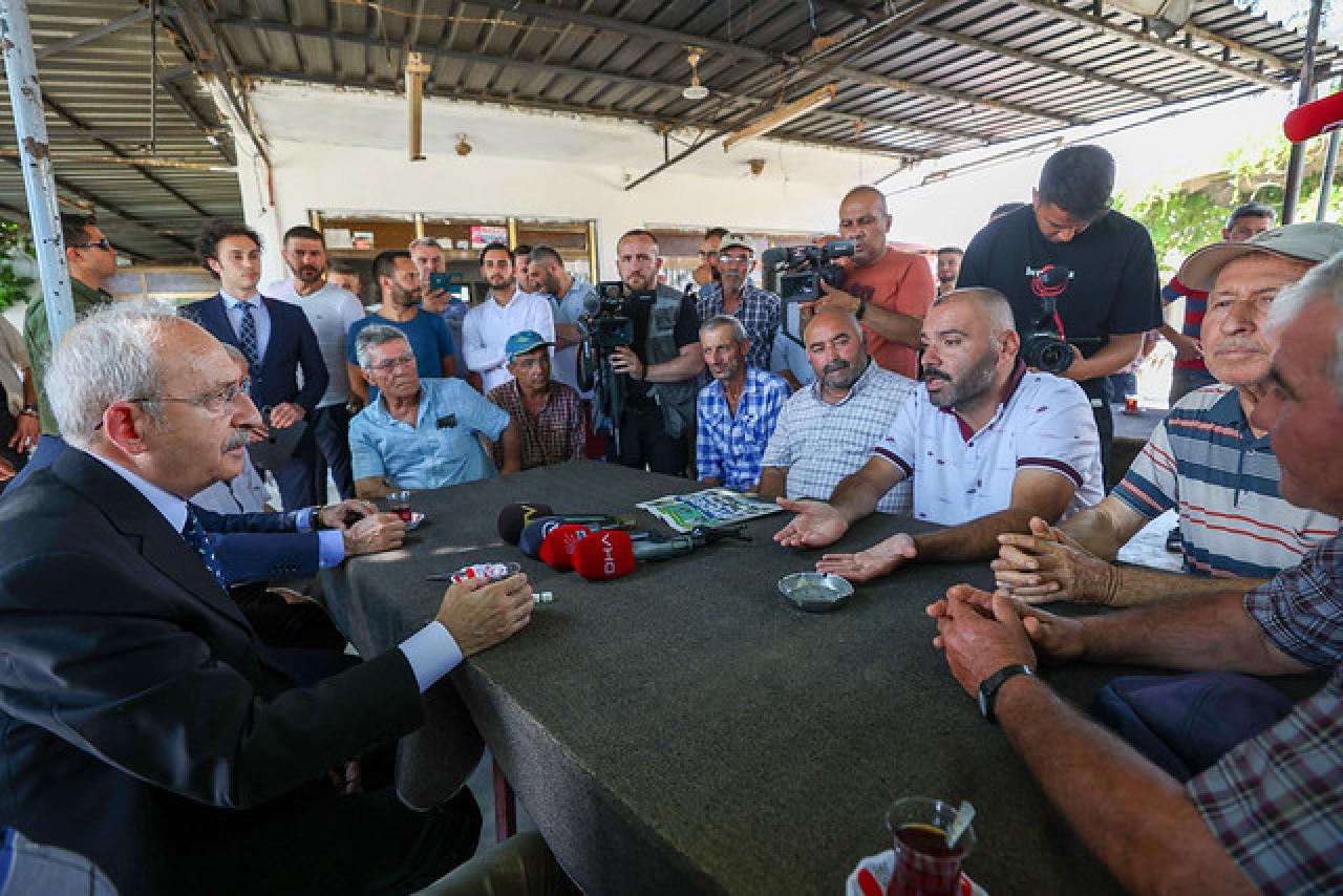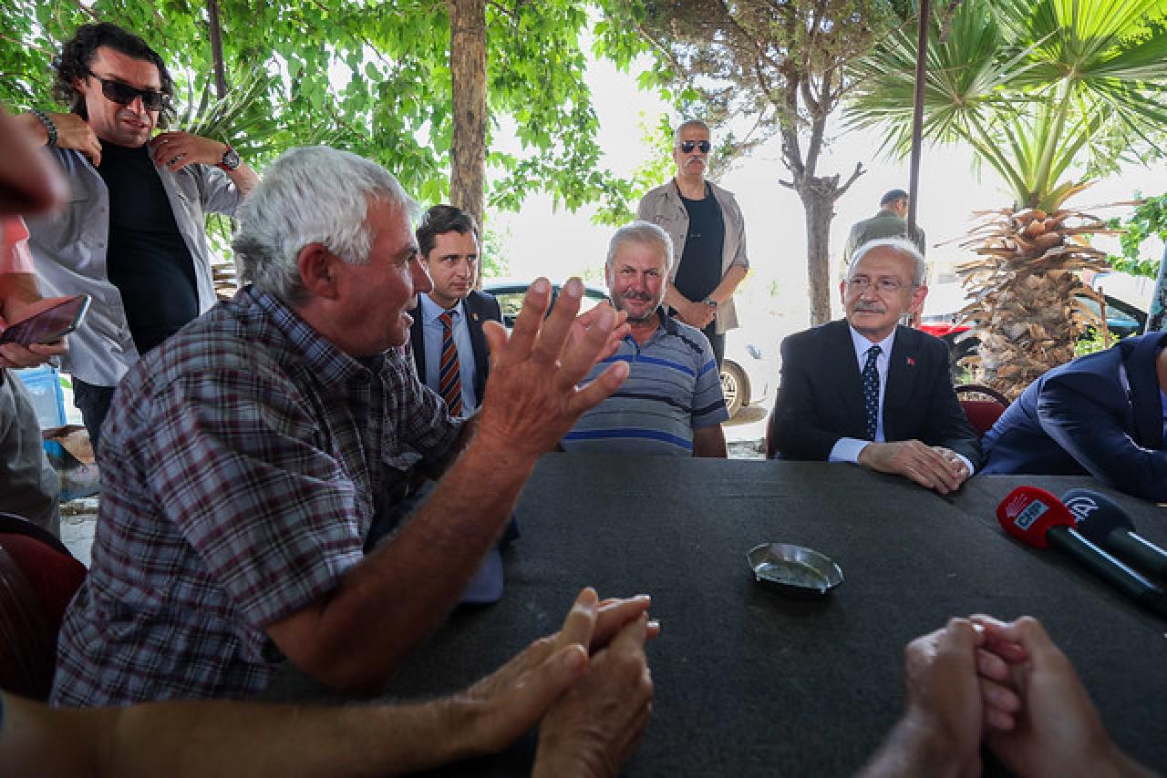 Bir diğer vatandaş ise “Kaymakamın hiçbir yere ziyaret ettiği yok. Hiçbir şey yaptığı yok. Yıllardır ben bu köydeyim. 30 sene sanayicilik yaptım, geldim bu köyde üretim yapıyorum. Üretiyorum. Ama ürete, ürete, ürete battık” diye konuştu. Köylüye “Çiftçiyi desteklemeyen ülke batar” diye yanıt veren CHP lideri Kılıçdaroğlu, “84 milyonun karnını kim doyuracak? Bunlar gidince destek olacak. Tarım Kanunu var; ‘Her yıl çiftçiye yüzde 1 oranda destek vereceksin’ diyor. Vereceksin, kanun bu. Kanun uygulanmıyor” diye konuştu.