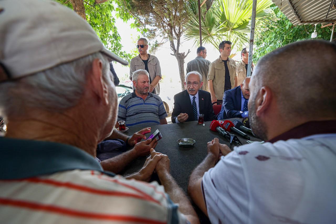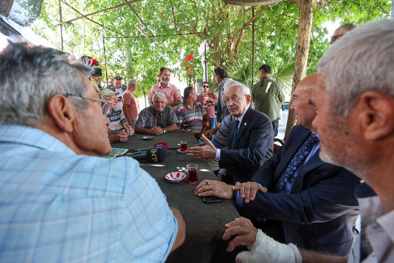 CHP Genel Başkanı Kemal Kılıçdaroğlu, Ödemiş’ten ayrılırken, bir köy kahvesinde çay içerek vatandaşlarla da sohbet etti.