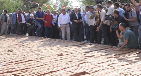 Genel Başkan Kılıçdaroğlu, Gelibolu Yarımadası’ndaki Kocadere köyünde düzenlenen Adalet Kurultayı’nın son günü, kamp alanında "Adalet Anıtı" için hazırlanan tuğlaların bulunduğu yere gitti.