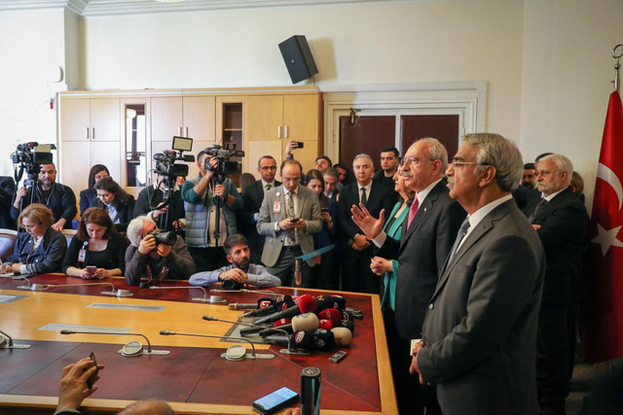 CHP lideri ve Cumhurbaşkanı Adayı Kemal Kılıçdaroğlu ile HDP Eş Genel Başkanları Pervin Buldan ve Mithat Sancar, görüşme sonrası TBMM’de düzenledikleri basın toplantısında şu açıklamalarda bulundu: