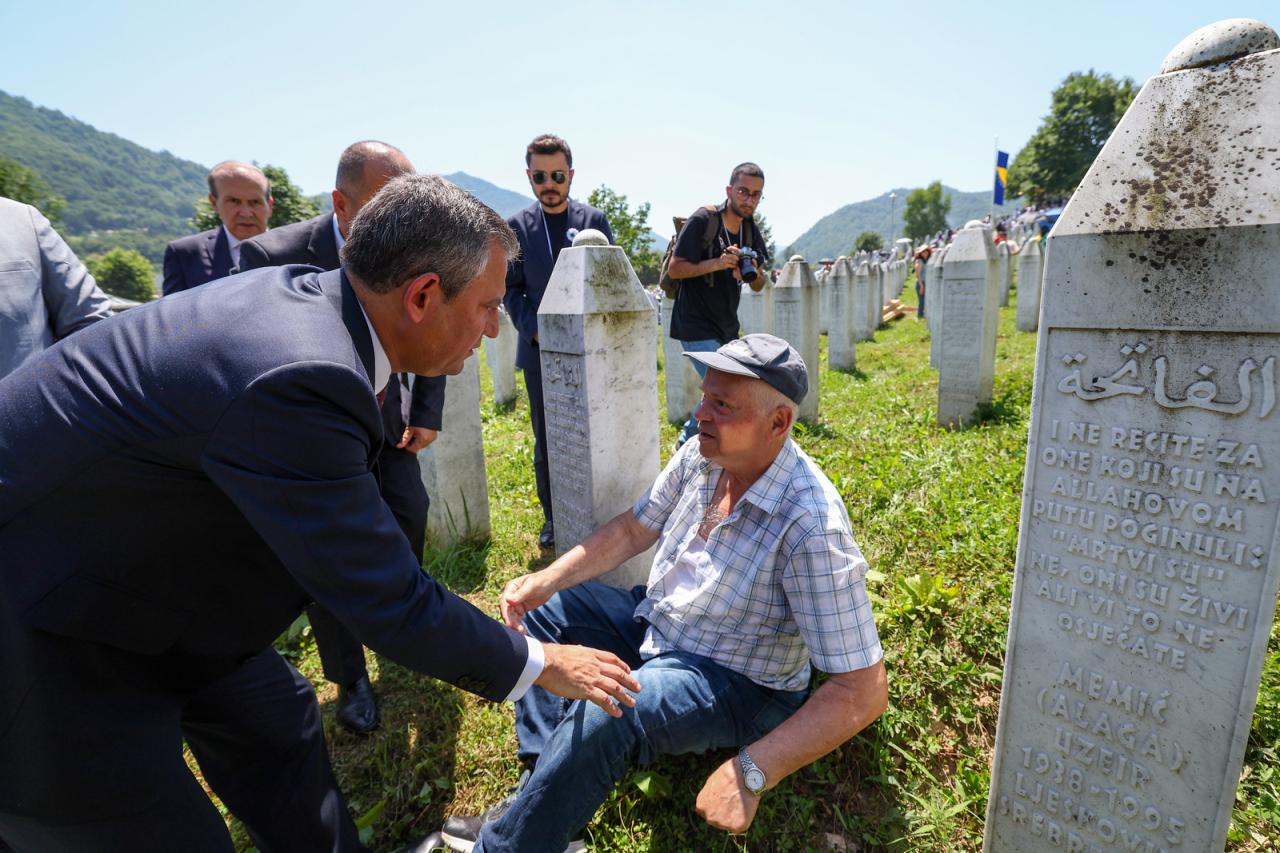 Cumhuriyet Halk Partisi Genel Başkanı Özgür Özel, Bosna Hersek’te Srebrenitsa Soykırımının 29’uncu yılındaki anma törenlerine katıldı. Eski akü fabrikasında başlayan törenlerde Anma Merkezi’ni gezerek Şeref Defterini imzalayan CHP lideri Özel, Srebrenitsa Anıtı’na çelenk bıraktı, ailelerle bir araya geldi. Soykırımın 29'uncu yılında kimlikleri tespit edilen 14 Boşnak için kılınan cenaze namazına ve duaya katılan CHP Genel Başkanı Özel, defin töreninde yakınlarını kaybedenlere baş sağlığı diledi.