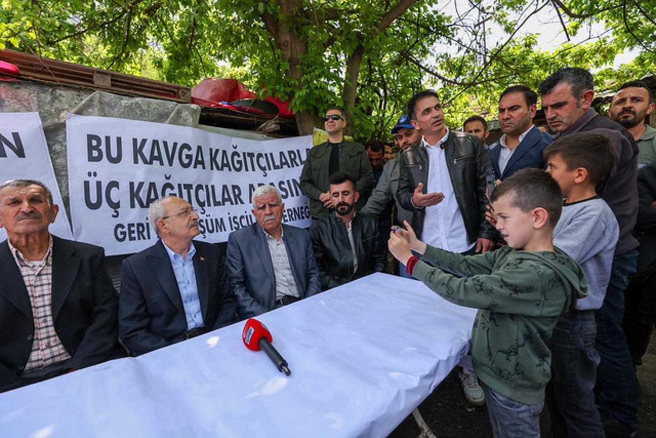 Geri dönüşüm emekçisi bir yurttaş, geri dönüşüm pazarının tekrar açılmasını talep etti. Kılıçdaroğlu da bu konuyu da görüşeceklerini ifade etti.