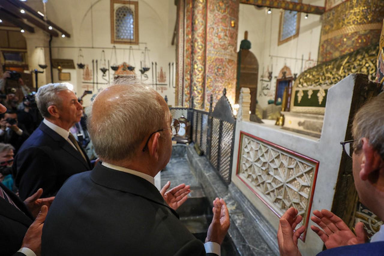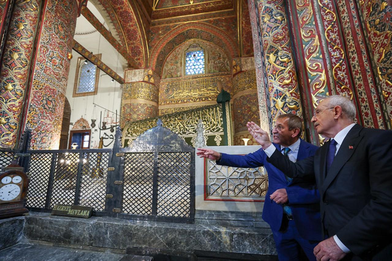Cumhuriyet Halk Partisi Genel Başkanı ve Millet İttifakı Cumhurbaşkanı Adayı Kemal Kılıçdaroğlu, Konya'da Mevlânâ Türbesini ziyaret ederek Mevlânâ Celâleddîn-i Rûmî'nin kabri başında dua etti.