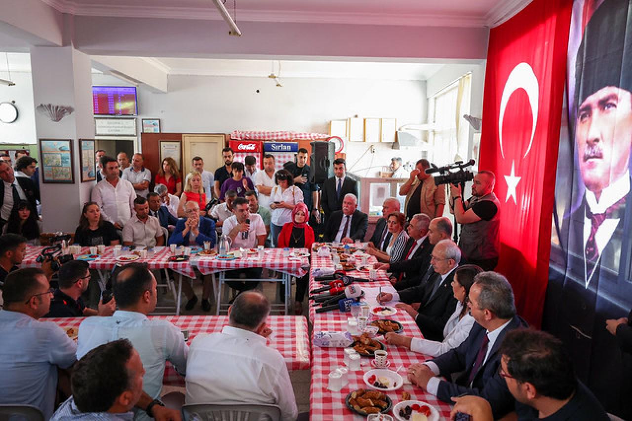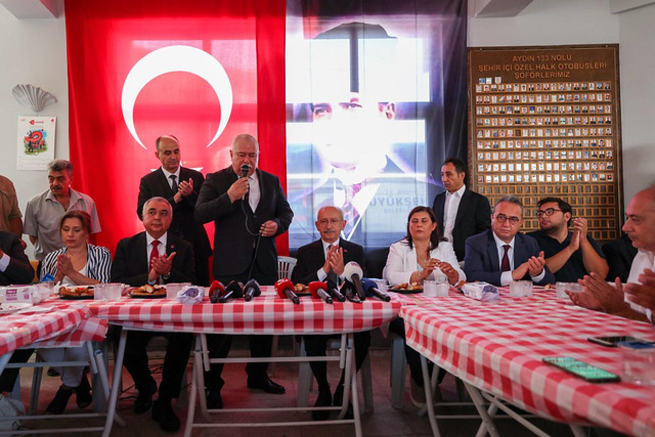 Cumhuriyet Halk Partisi Genel Başkanı Kemal Kılıçdaroğlu, Aydın’da yolcu ve yük taşıyıcısı esnaf ile Aydın Şoförler Odası’nda bir araya geldi. Şoförlerin talep ve sorunlarını dinleyen CHP lideri Kılıçdaroğlu, çözüm önerilerini anlattı.