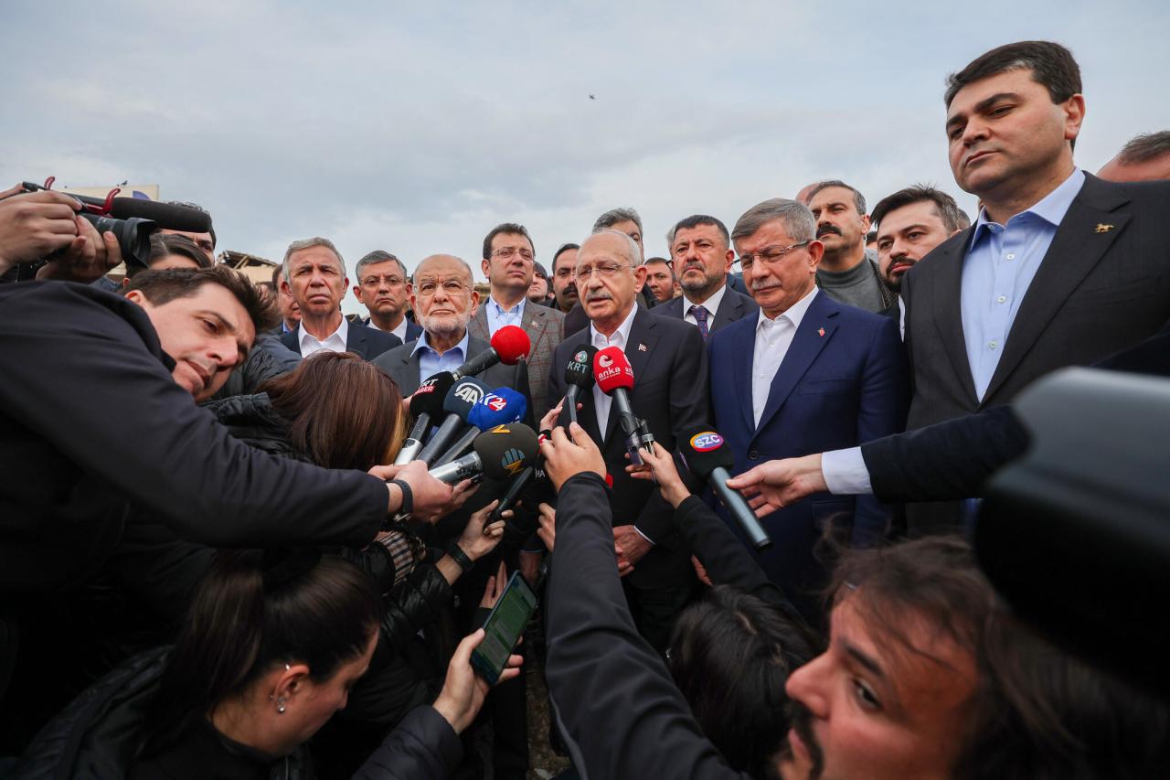 CHP Genel Başkanı ve Cumhurbaşkanı Adayı Kemal Kılıçdaroğlu, Millet İttifakı'nı oluşturan siyasi partilerinin liderleri depremzedelerle bir araya geldi. Genel başkanlara; İstanbul Büyükşehir Belediye Başkanı Ekrem İmamoğlu ve Ankara Büyükşehir Belediye Başkanı Mansur Yavaş da eşlik etti. CHP Genel Başkanı ve Cumhurbaşkanı Adayı Kemal Kılıçdaroğlu, burada basın mensuplarına yaptığı açıklamada şunları söyledi:
