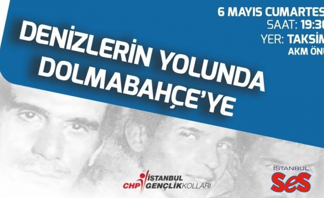 Taksim’de bulunan Atatürk Kültür Merkezi önünde bir araya gelecek CHP’li gençler, yürüyüşün ardından 6. Filo protestolarının gerçekleştirildiği Dolmabahçe’de anma töreni düzenleyecek. CHP İstanbul İl Gençlik Örgütü Başkanı Kenan Otlu, 6 Mayıs Cumartesi saat 19.30’da gerçekleştirilecek yürüyüş için yaptığı çağrıda, “Taksim’den Dolmabahçe’ye Denizlerin yolunda yürümek için tüm halkımızı bu davaya omuz vermeye davet ediyoruz” dedi.