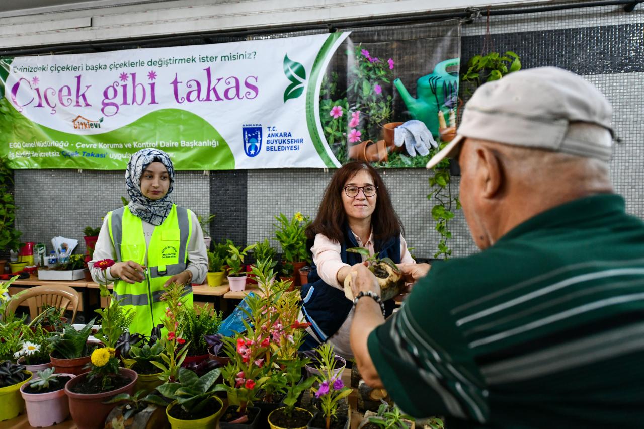 ABB Çevre Koruma ve Kontrol Daire Başkanlığı, EGO Genel Müdürlüğü ve ANFA Bitki Evi iş birliği ile ilki Batıkent Metro İstasyonu’nda başlatılan ve büyük ilgi gören‘Çiçeğim Takas’ uygulaması devam ediyor.