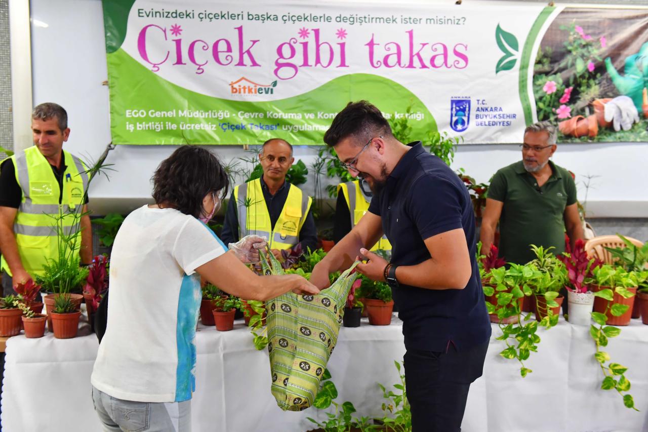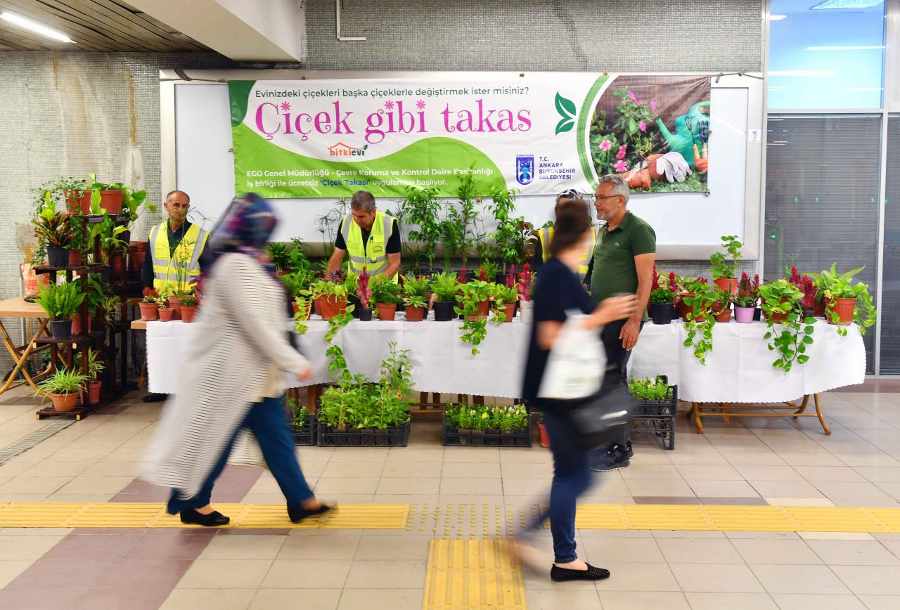 Çevre Koruma ve Kontrol Daire Başkanlığı, EGO Genel Müdürlüğü ve ANFA Bitki Evi iş birliği ile ilki Batıkent Metro İstasyonu’nda hayata geçirilen‘Çiçeğim Takas’ uygulaması şimdi de Beşevler Metro altında açılan stant ile devam ediyor.