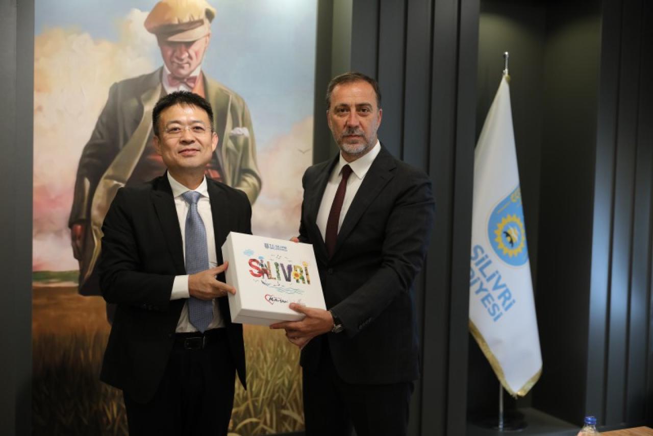 Türkiye’de öncü, önder ve örnek tarım projelerine imza atan Silivri Belediyesi, tarım konulu araştırmalar yapmak üzere Çin’den ülkemize gelen önemli misafirleri ağırladı. Çin’in Sichuan Eyaleti Suning şehri Belediye Başkanı Mr. Jing Lin ve beraberindeki araştırmacı heyet, Silivri Belediye Başkanı Volkan Yılmaz’ı ziyaret etti. Eşref Efendi Toplantı Salonunda gerçekleştirilen görüşmede Başkan Yılmaz, heyete Silivri Belediyesinin tarım projeleri hakkında detaylı bilgiler verdi. Heyet daha sonra, Silivri Belediyesi Gümüşyaka Tarımsal Üretim ve Araştırma Merkezini (TÜRAM) ziyaret etti. TÜRAM yetkilileri heyet ile bilimsel deneyler, tarım teknolojilerinin uygulanması ve tarım teknolojilerinin dönüşümleri konusunda karşılıklı görüş alışverişi yaptı. Heyet ile ayrıca Silivri’de organik tarım üssü kurulması konusunda istişarelerde bulundu.