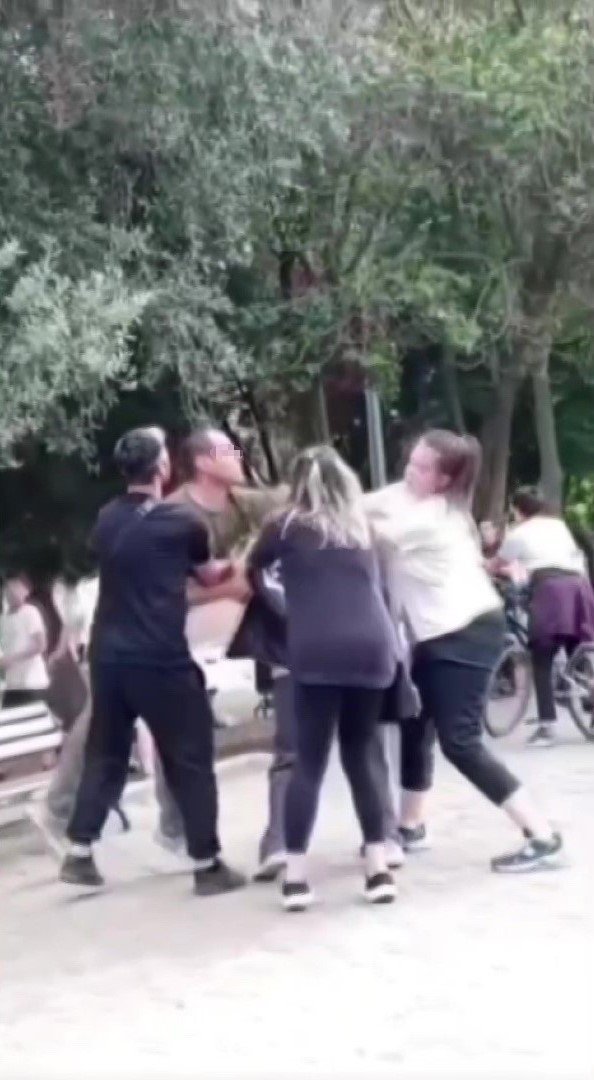 Öte yandan, şahsın tartıştığı kadına saldırdığı ve parktaki diğer vatandaşların araya girmeye çalıştığı anlar vatandaşın cep telefonu kamerasına yansıdı.