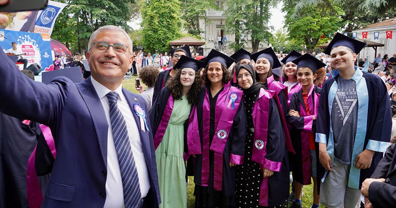 Üsküdar Çocuk Üniversitesi’nin 2021- 2022 mezunları ve tüm eğitim kadrosunun yer aldığı mezuniyet töreninde çocuklar diplomalarını alırken gurur dolu anlar yaşadı. Çeşitli etkinlik ve gösterilerin yer aldığı programda mezun olan öğrenciler aileleri ile birlikte etkinlik alanında hatıra fotoğrafı çektirdi. Başkanımız Hilmi Türkmen mezuniyet törenine katılım sağlayarak öğrenciler ve aileleri ile selamlaşarak sohbet etti.