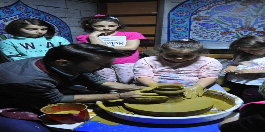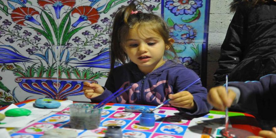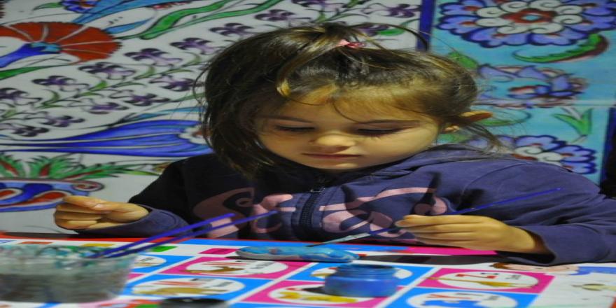 Çocuklar atölyelerde yaptıkları ebruları ve kendi elleri ile hazırladıkları çömlekleri hatıra olarak evlerine götürüyorlar.