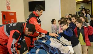 Sarıyer Belediyesi Ulaşım Hizmetleri Müdürlüğü’ne bağlı Sivil Savunma Birimi,çocuklara afet anında nasıl davranılması, nelere dikkat edilmesi gerektiği konularında bilgi verdi. Sivil savunma birimi yetkilileri öğrencilere hem afetlerin verebileceği hasarları en aza indirmek için alınması gereken önlemleri hemde afet sırasında yapılması gerekenleri anlattı. Hayati önem taşıyan her türlü resmi ve özel kurumun korunması ve faaliyetlerinin devamını sağlayacak iyileştirmelerin yapılmasının Sivil Savunma Birimi’nin en önde gelen görevi olduğunu söyleyen uzmanlar, çocukları sahneye çıkararak uygulamalı deprem tatbikatı yaptırdı. Eğitim, deprem çantası dağıtılmasının ardından son buldu.