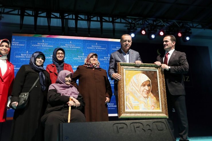 Milleti kuşatarak, kucaklayarak hedeflere doğru yürümeye devam edeceklerini belirten Cumhurbaşkanı Erdoğan, "Atatürk Kültür Merkezi vardı burada, bunlar bize yakışmayan bize uymayan ne kadar dünyada meşhur aşırı uçlar varsa onların kan kokan pankartlarını astılar. O pankartların hepsi sökülüp atıldı. Burada hemen arkamızda Türkiye'nin inşallah en büyük dev opera salonunu yapıyoruz. Bu salon Türkiye'ye değil dünyaya örnek olacak. Biz iş üretiyoruz. Onlar ise bu tür salonları cam çerçeve indirmekte meşgul oldular. 23 Haziran'da bir kez daha milletin hakemliğine gitmekten memnununuz. İstanbul için büyük hayallerimiz var. 2023 hedeflerine ulaştırma kararlılığımızdan en küçük taviz vermedik. Ülkemizi bölgemizde yaşanan sıkıntılı süreçten çıkartma konusunda kararlıyız. Türkiye'nin 82 milyon vatandaşından ibaret olmadığını ve yüz milyonlarca insanın umudu olduğunu biliyoruz. Eski Türkiye bakiyesi bir avuç seçkinin kendi ihtirasları adına bu umudu söndürmesine asla göz yumamayız. Büyük Türkiye davasına sahip çıkmak milletimizin birlik ve beraberliğini gözetmek ortak görevdir. Biz her fırsatta bir olalım, iri olalım, diri olalım, kardeş olalım, hep birlikte Türkiye olalım diyoruz. Her fırsatta milletimize birlik çağrısı yapıyoruz. İnşallah önümüzdeki dönemde 82 milyonun kardeşliğini savunmaya devam edeceğiz. Hiç kimseyi dışlamadan kuşatıcı bir anlayışla gece gündüz çalışmayı sürdüreceğiz" ifadelerini kullandı.