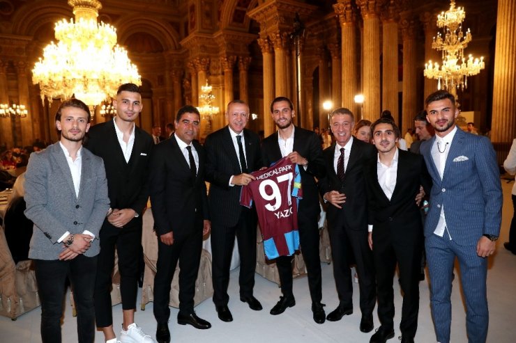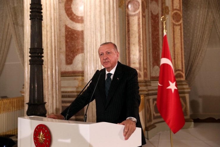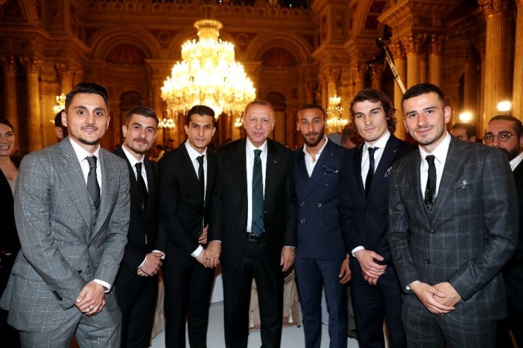 Sanatçı ve sporcuları desteklemeye devam edeceklerini söyleyen Cumhurbaşkanı Erdoğan, "Biz Allah ömür verdiği müddetçe kültür sanatı sporcu desteklemeye devam edeceğiz. Sanatçı ve sporcu dostu olarak anılmak bizim için en büyük mutluluktur. Bu salonda burası Dolmabahçe Sarayının Muayede Salonu, bu salonda inşaasından bu yana sadece uluslararası toplantıların imza merasimleri yapılmıştır. Her zaman toplanılan buralarda törenlerin yapıldığı bir salon değil. Onun için adı muayede salonu, bizlerde bu salonu müstesna günlerde, uluslararası toplantılar vesilesiyle bir araya geldik ve kullandık. Şimdide bizler Ramazan Ayının böyle bir anlamlı gecesinde siz sporcu sanatçı dostlarımızla bir araya gelelim, tarihten devraldığımız bu mirasın kubbesi altında toplanalım istedik. Biz medeniyet iddiası olan bir geleneğin temsilcisiyiz. Bunu da inanıyorum, sizler başaracağız. Sanat ve spor boyutu güçlü olmayan medeniyet eksik kalır, ecdadımızın geride bıraktığı mirasla iftihar ediyoruz. Onların iftiharla yad edecekleri eserler ve başarılar bırakmamız gerekiyor" ifadelerini kullandı.
