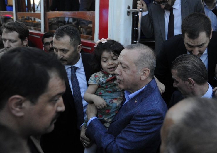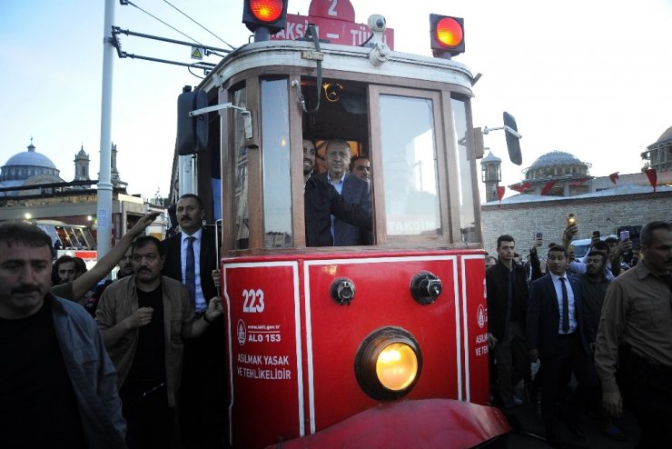 Cumhurbaşkanı Recep Tayyip Erdoğan, Beyoğlu Taksim Meydanı'nda geleneksel olarak düzenlenen iftar programı için, nostaljik tramvaya binerek vatandaşlarla bir süre sohbet etti.