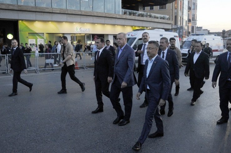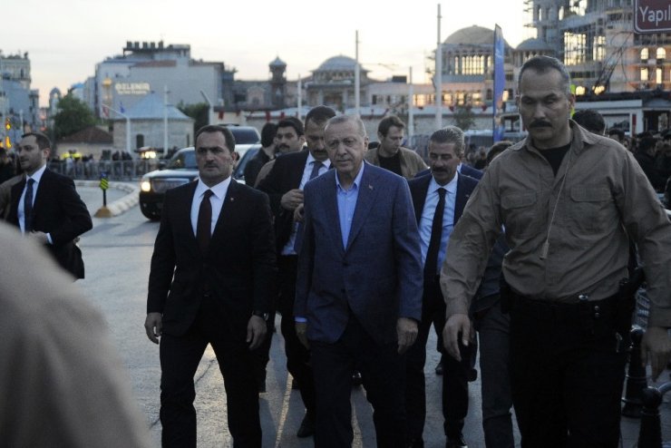 Cumhurbaşkanı Recep Tayyip Erdoğan, Beyoğlu Taksim Meydanı'nda düzenlenen iftara katıldı. Erdoğan, iftar öncesi İstiklal Caddesi'nde önce bir süre yürüdü sonrasında ise nostaljik tramvaya bindi. Cumhurbaşkanı, vatandaşlarla bir süre sohbet edip, fotoğraf çektirdi. Erdoğan, İstiklal Caddesi'ndeki gezisinin ardından Taksim Meydanı'ndaki iftar çadırına girdi.