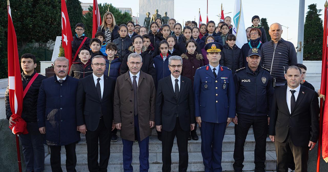 Saygı duruşu ve İstiklâl Marşı'nın ardından, Atatürk Anıtı'na çelenk sunuldu.