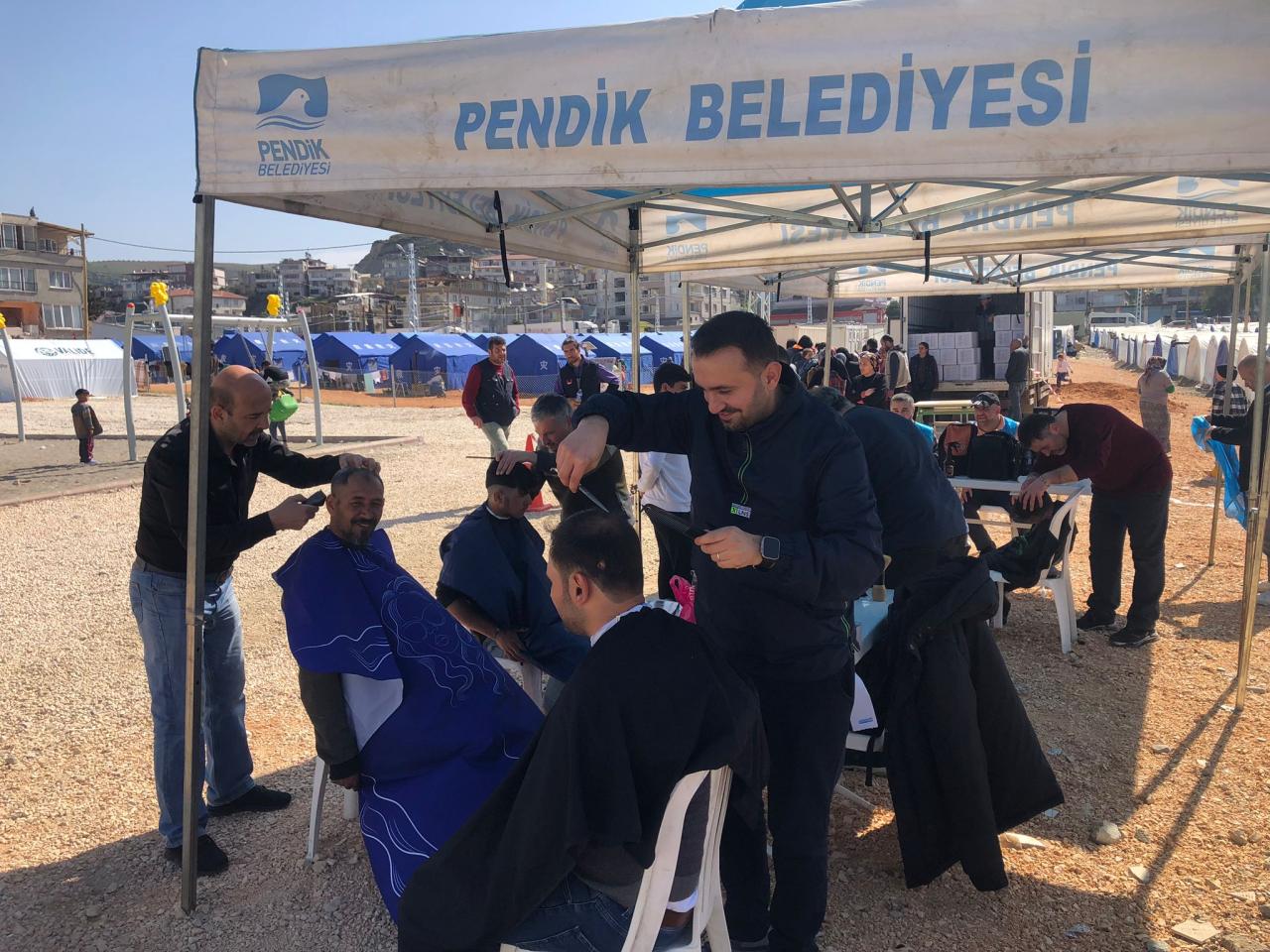 Pendik Belediyesi deprem bölgesinde depremzedeler için hizmetlerine devam ediyor. Bölgede temizlikten bina hasar tespitine, günlük yemek ikramından çocuklarla yapılan çeşitli aktivitelere pek çok çalışmayı yürütüyor. Pendik Belediyesi ve Pendik Berberler Odası iş birliğiyle gönüllü berberler depremzede vatandaşların kişisel bakımları için berber hizmeti veriyor. Vatandaşlar Hatay deprem bölgesinde kurulan alana gelerek gönüllü berberlerden saç kesim, yıkama, tıraş ve benzeri berber işlemlerini yaptırabiliyor.