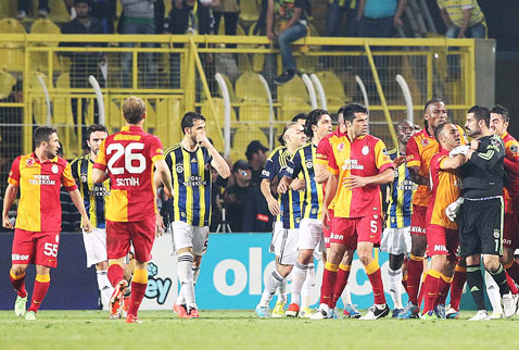 arasındaki gerilim kavgaya dönüştü. Karşılaşmanın hakemi Cüneyt Çakır, Volkan Demirel ve Sabri Sarıoğlu'na kırmızı kart gösterdı ve oyun dışı etti. Oyuncu hakkı değişikliğini tamamlayan