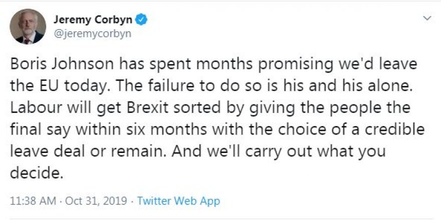 Jeremy Corbyn: Seçimi İçi Partisi kazanırsa ikinci bir Brexit referandumu düzenlenecek