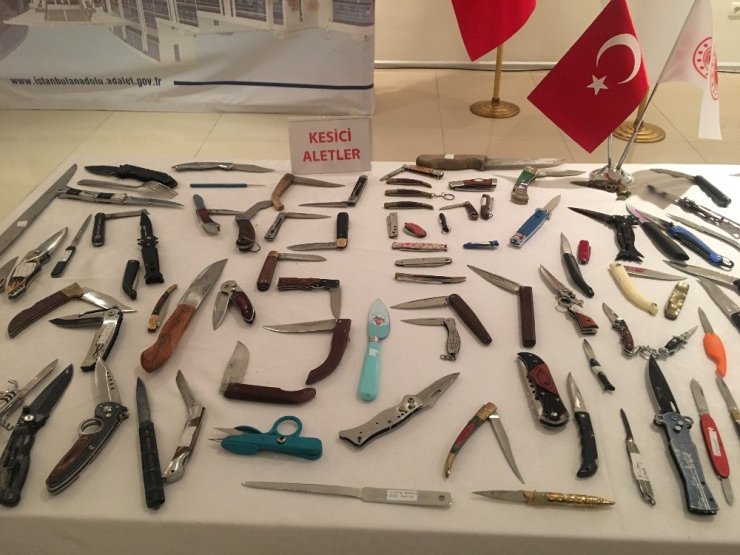 Dünyanın en büyük adliyesi olan Kartal Anadolu Adalet Sarayı'nda 2019 yılı içerisinde adliye girişinde üst aramasında ve araba bagajlarında ele geçirilen suç eşyaları sergilendi. 8 bin 500 suç eşyasının bulunduğu sergide, motorlu testere, samuray kılıcı, kartvizit ve kalem görünümlü bıçaklar ile elektroşok cihazları dikkat çekti.