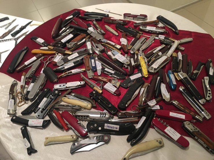 2019 yılı içerisinde yaklaşık 5 aylık sürede 8 bin 500 suç eşyasının bulunduğu sergide, çok sayıda kesici ve delici aletler yer alıyor. Çok sayıda sopa ve bıçak, beyzbol sopası, muştalar, balta, keser, satır, maket bıçağı, makas, biber gazı, sahte polis, özel harekat ve jandarma rozetleri bulunuyor.