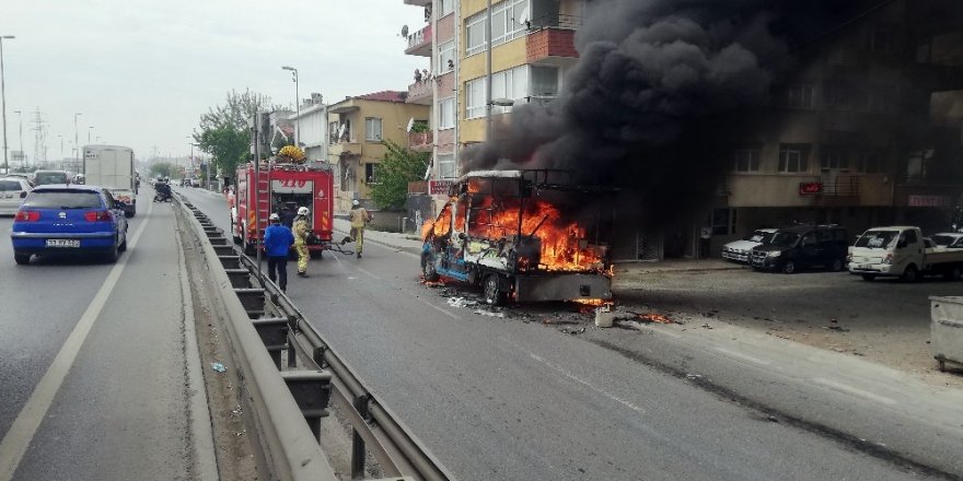 Kamyonette ufak çaplı patlamalar da meydana gelirken, itfaiyenin ulaşması ile yangın kısa sürede söndürüldü. Trafik ise tek şeritten kontrollü olarak sağlandı.