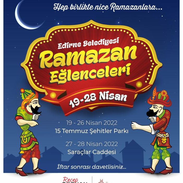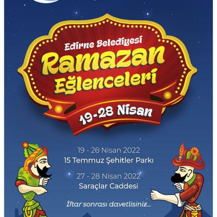 Edirne Belediyesi, eski Ramazan gecelerinin yaşatılması amacıyla Ramazan Eğlenceleri düzenliyor. Ramazan Eğlenceleri 19-28 Nisan tarihleri arasında Şehit Astsubay Ömer Halisdemir ve 15 Temmuz Cumhuriyet ve Demokrasi Şehitleri Parkı’nda 27 Nisan ve 28 Nisan’da ise Saraçlar Caddesi’nde Edirneliler ile buluşacak.