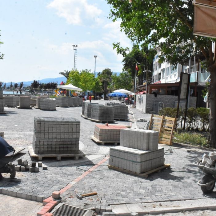 Akçay Mahallesi’nde de kordonu ve meydanı yaz sezonuna hazırlayan Fen İşleri Müdürlüğü ekipleri kordonu kozak taşı işe kaplıyor. Renkli taşlarla kordon düzenleme çalışmalarını sürdüren ekipler etap etap devam ederek Akçay’ı nostaljik görünümü modern yapısıyla, plajı ve yeni kent meydanıyla halkın kullanımına hazırlıyor.