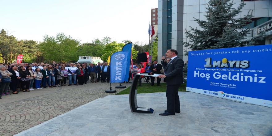 Tüm emekçilerin 1 Mayıs Emek ve Dayanışma Günü’nü kutlayan Beylikdüzü Belediye Başkanı Mehmet Murat Çalık, “Emek huzurlu değilse millete huzurlu iş üretemezsiniz. Mutlu bir memlekette yaşamak istiyorsak emeği üreten insanların huzurla çalışıyor olması ve emeğinin karşılığını alıyor olması gerekiyor” dedi. Sendikalarla her zaman işbirliği içerisinde olacaklarını da vurgulayan Çalık, “Sosyal demokrat bir belediye olarak çalışma arkadaşlarımızın huzurla çalışması için imkân ve olanaklarını her zaman kendi duygumuzun önüne aldık. Çalışma arkadaşlarımızın huzurla çalışması için uygun çalışma koşullarını sağlarken sendikalarımızla birlik olmaya özen gösterdik. Biz her zaman işçinin, emekçinin ve yurttaşın yanında olmaya gayret göstereceğiz. İstanbul’u daha güzel günler bekliyor. Dünden daha güzel bir gündeyiz, yarınlarımız daha da güzel olacak. Bunu tüm emekçi arkadaşlarımızla başaracağız” diyerek 1 Mayıs’ta tüm emekçilerle Bakırköy’de olacağını söyledi, personeli de kutlamalara davet etti.
