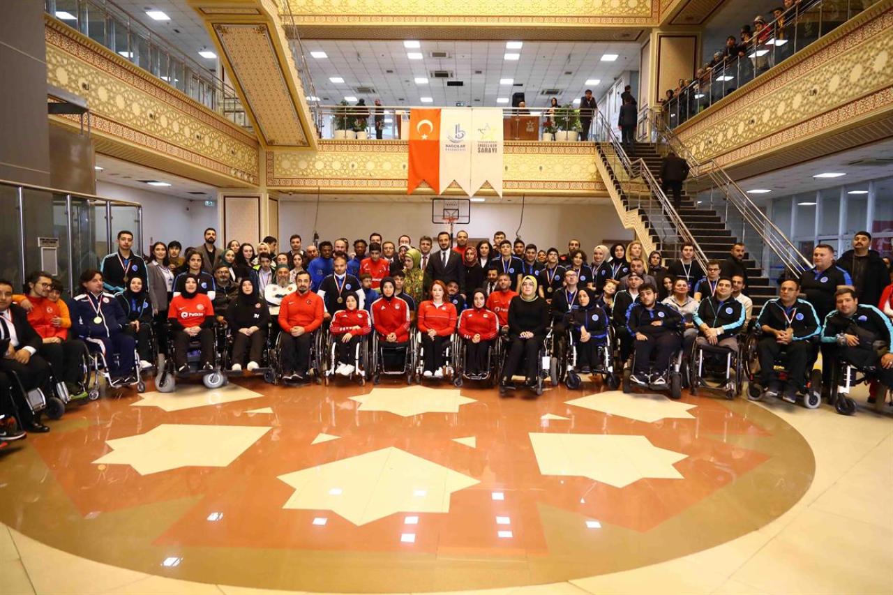 Engellilerin hayallerini gerçeğe dönüştürdüklerini söyleyen Bağcılar Belediye Başkanı Abdullah Özdemir ise “Cumhurbaşkanımız Recep Tayyip Erdoğan’ın engellilerle ilgili yapmış olduğu çalışmalar hem belediyemizin hem hükümetimizin çalışmalarıyla engellilerimiz ve aileleri en önde olan fertler haline geldi. Engelliler sarayımız sizlerin de katılımıyla 2011 yılında hizmete açılmıştı. 11 yıllık süreç içerisinde çok büyük adımlara vesile oldu. Burada engelli bireylerimizin sadece hayata katılımı değil aynı zamanda hayatta öncü bireyle olması adına büyük hizmetler yapıldı. Var olan çalışmalarımızın niteliğini daha da ilerilere götürme gayreti içerisindeyiz. Ülkemizde engelli ailelerimizle ve engelli bireylerimizle birlikte inşallah daha da ileriye, daha da iyi noktalara gelinmesine, burada yapılan süreçler vesile olacak” diye konuştu. Konuşmanın ardından Özdemir, Erdoğan’a özel bir tablo hediye etti.