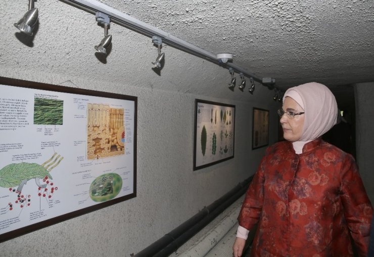 Ayrıca botanik bahçede devam eden eğitim çalışmaları, bilimsel araştırmalar ve sürdürülebilir sıfır atık uygulamaları hakkında uzmanların sunum yaptığı programda Emine Erdoğan, yaklaşık 8 bin 500 bitkinin bulunduğu kurutulmuş bitki müzesi Herbaryumu ve kütüphaneyi de ziyaret etti.