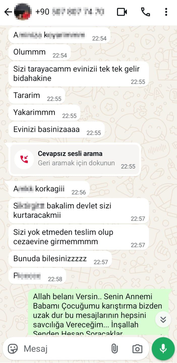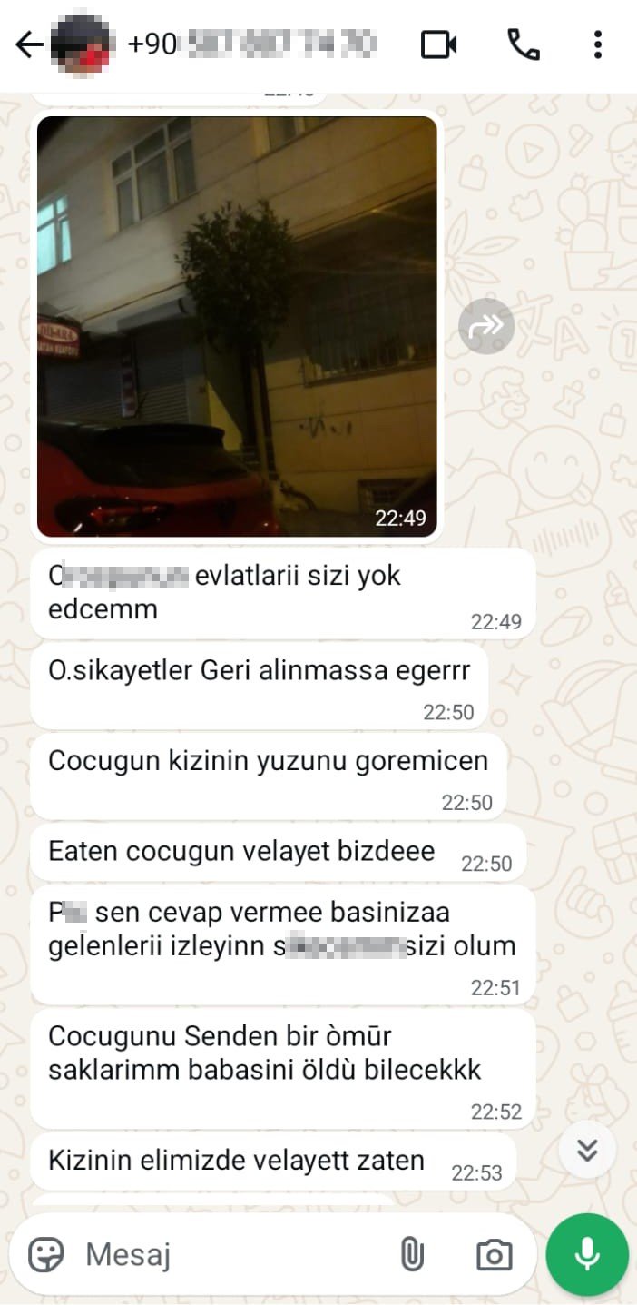 Yaşadığı olayı anlatan Ebubekir Baran "19 Şubat'ta eşimle tartışmamız sonucu çocuğu bırakıp gece yarısı evi terk etti. Ben ertesi günü işe giderken çocuğa bakması için annemi çağırdım. Eşim eve gelip annemi merdivenlerden itip darp etti ve çocuğu alıp annesine gitti. Daha sonra ben cenaze için memlekete gittim. Oradayken erkek kardeşi tarafından aranıp ağır küfürler ve ağır tehditlere maruz kaldım. Kardeşi bana eğer şikayetini geri çekmezsen evini kundaklayacağım, evini yakacağım dedi. Sonra bana kar maskeli olarak elinde pompalı tüfekle tehditkar fotoğraflar attı. Beni "seni öldürürüm, bu pompalı tüfekle kafana sıkarım" şeklinde tehdit etti. Cenazeden döner dönmez karakola gidip şikayetçi olarak, can güvenliğimin olmadığını belirttim. Tehditlere devam ettiği için 7 defa ek ifade verdim. İkametlerimize gelerek zilime basıp bana silah çekti. Ardından ben kendimi apartmana atınca o da kaçtı. İkametlerimize gelerek bizi defalarca öldürmeye çalıştı. Şikâyetlerini geri çekmezsen çocuğunu saklarım, çocuğa da baban öldü derim diye beni defalarca tehdit etti. Şahıs 5 ay sonra yakalanıp mahkemeye çıkarıldı ve serbest bırakıldı. Can güvenliğimiz yok, devlet yetkililerinden yardım bekliyorum. Eşim alınan uzaklaştırmaya uymadı. Benim evime avukatı ile birlikte baskın yapıp evden çıkmam için mafyatik olarak tehdit ettiler. Geldiklerine dair görüntüler var" dedi.