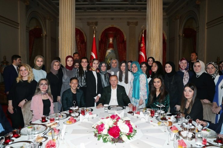 Cumhurbaşkanı Recep Tayyip Erdoğan, Dolmabahçe Sarayı'nda gençlerin katılımıyla düzenlenen iftar programına katıldı. İftar sonrasında gençlerin sorularını yanıtlayan Cumhurbaşkanı Erdoğan, programın düzenlendiği salonun önemine vurgu yaparak, "Bu salonda geçmişte büyüklerimiz Osmanlı iki kez falan uluslararası toplantılar yaparlarmış. Bende göreve geldikten sonra yine uluslararası bazı müstesna toplantıları bu salonda yapıyorum. Bu salonun adı muayede salonu, her toplantıya da açık değil. Ama görüldüğü gibi çok farklı bir özelliğe sahip, 1856 buranın açılış yılı, o günden bugüne saray 163 yıl geride kaldı. Görüldüğü gibi bütün işçilikleriyle yaptığımız restorasyon çalışmalarıyla burayı ayakta tutmaya çalışıyoruz. Burası 2 bin metrekare büyük bir alana sahip. Şu avize 4,5 ton ağırlığında, üzerinde de 2 milyon adeta bütün avizelerde kristal taş var. O günden bugüne korunması ve bu halde oluşu, zaman zaman Dolmabahçe Sarayı'na gelenler gidenler, bunlar bizim için önemli. Sarayların tamamı Cumhurbaşkanlığına bağlandı, burayı çok hassas bir şekilde korumaya çalışıyoruz. Buraları biz çok iyi korumamız lazım, ama gençlerimizde buraları gezmeleri lazım. İstanbul'da sadece Topkapı Sarayı değil, bunun dışında birçok sarayların restorasyonlarını yapıyoruz. Yıldız, Beylerbeyi Sarayı'nın bakımlarını yaparak gençlere açıyoruz." diye konuştu.