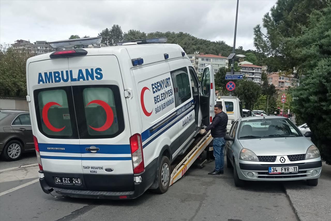 Esenyurt Belediyesi’nin Hasta Nakil Ambulansı, hasta almayagittiği sırada yine haczedildi. Sevk bekleyen hasta, ambulansın bağlanmasınedeniyle hastanede mahsur kaldı.