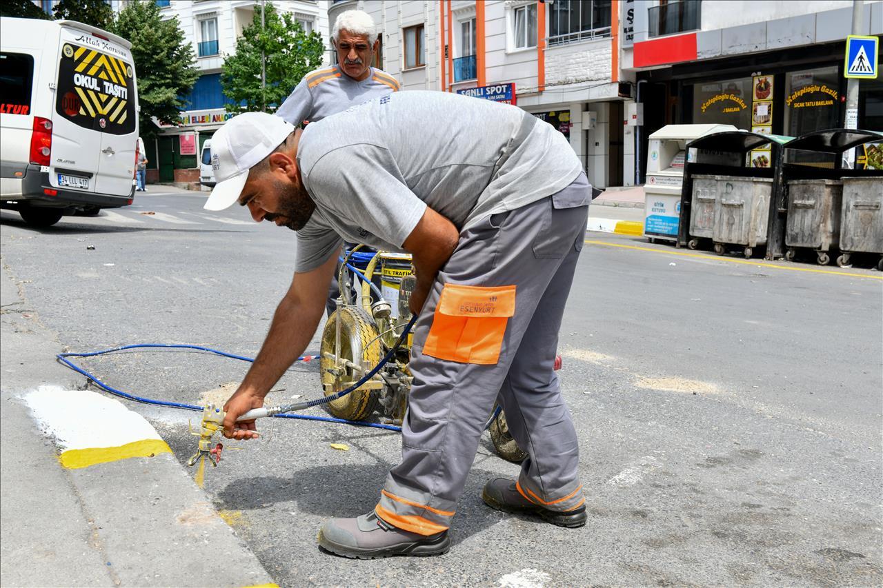 Esenyurt Belediyesi, ilçe genelindeki caddeile orta refüjlerde bulunan bordürlerde hem kötü görüntü oluşmasını engellemekhem de geceleri sürücülerin sorun yaşamasının önüne geçmek için boyamaçalışması gerçekleştiriyor.